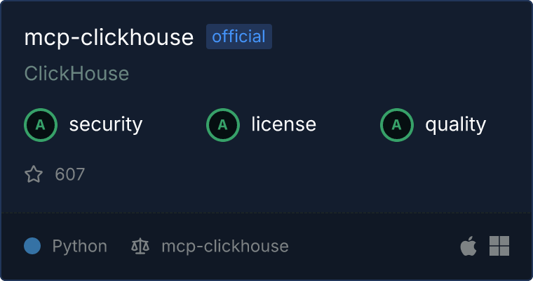 CLICKHOUSE_HOST: The hostname of your ClickHouse serverCLICKHOUSE_USER: The username for authenticationCLICKHOUSE_PASSWORD: The password for authentication[!CAUTION] It is important to treat your MCP database user as you would any external client connecting to your database, granting only the minimum necessary privileges required for its operation. The use of default or administrative users should be strictly avoided at all times.