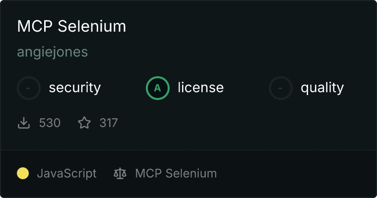 npm installnpm startTo install MCP Selenium for Claude Desktop automatically via Smithery: