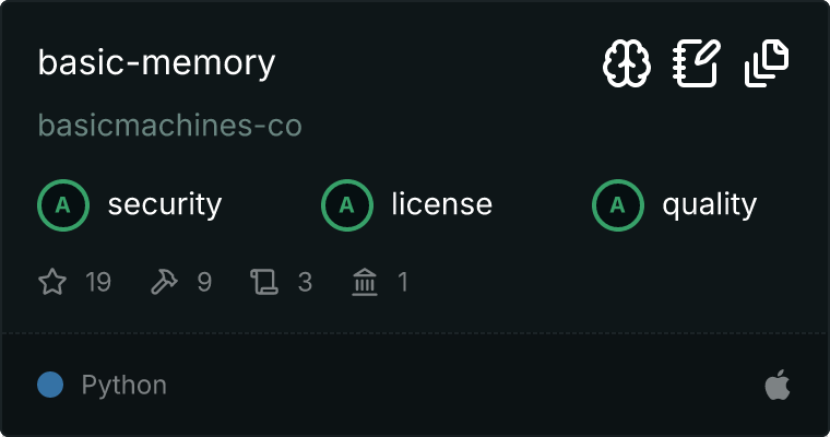 Basic Memory is a knowledge management system that allows you to build a persistent semantic graph from conversations with AI assistants, stored in standard Markdown files on your computer. Integrates directly with Obsidan.md