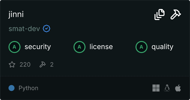 This will make the jinni CLI command available in your environment. See the "Running the Server" section above for how to start the MCP server depending on your installation method.
