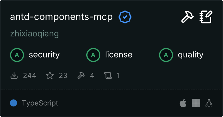 A Model Context Protocol (MCP) server that provides Ant Design component documentation to large language models (LLMs) like Claude. This server allows LLMs to explore and understand Ant Design components through a set of dedicated tools.